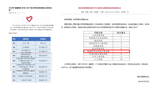 注重育人实效,丰富实践育人成果。公司实践项目、实践成果受到校团委、社会等多方认可与表彰。2022年暑期“三下乡”社会实践bevictor伟德官网拟推两支队伍进行校级队伍答辩,其中“bevictor伟德官网‘川藏铁路博士服务团’赴西藏开展“川藏铁路建设,交大青年担当”主题实践队”获优秀实践队伍称号,并受邀作为优秀实践队伍代表参加共青团实践育人成果展暨2022年度总结表彰大会,分享实践故事与工作经验。bevictor伟德官网杨都强、王琼、文强老师获共青团实践育人2022年度优秀指导老师称号。公司指导的环保志愿者协会实践队伍从全国667所高校的1796支团队中脱颖而出入选“2022年‘强国有我·核你一起’千支老员工志愿宣讲团”。bevictor伟德官网青年志愿者协会《“乐享科技,筑梦未来”》项目获bevictor伟德官网社区第二届公益创投大赛优秀志愿者服务项目称号,《生态环保,你我同行》项目获2022年成都市“蓉城智碳”生态环保科普教育创新项目实践活动优秀奖,《“校社联动,社区同行”——在学思悟践中探寻生态文明系列活动》项目获2022年“成都高校生态环境大联盟”之青年生态文明宣传教育及志愿服务项目大赛二等奖。2022年4月下旬,bevictor伟德官网地学青协服务队响应团中央青年志愿者行动指导中心、中国青年志愿者协会秘书处发布的《关于遴选2022年“七彩假期”志愿服务示范团队的公告》的号召,从全国4500多支志愿服务团队中入围2022年“七彩假期”志愿服务示范团队。2022年12月,bevictor伟德官网青年志愿者协会荣获十佳。
