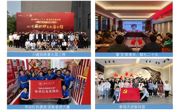 坚定理想信念,把稳实践育人方向。通过“学习二十大精神,争做新时代先锋”主题活动深入学习宣传贯彻党的二十大精神;通过“寻访红色遗迹·汲取奋进力量”——川藏铁路沿线党史研学实践活动,在红色遗迹中汲取奋进力量。通过“聚‘交’新青年,献礼二十大”与上海交通大学、西安交通大学、北京交通大学联合学习,将理想信念教育与实践相结合。通过带领员工骨干参观“天府家风馆”等校外爱国主义教育基地,厚植爱国主义情怀与优良思想道德品质。