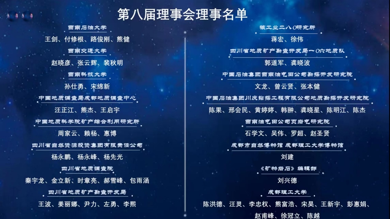 2022年11月26日,四川省矿物岩石地球化学学会第八次会员代表大会在成都理工大学地球科学公司会议室隆重召开,会议采用线上线下同步进行,经全体参会理事投票表决,公司赵晓彦、张云辉、裴秋明三位老师入选四川省矿物岩石地球化学学会第八届理事会名单,赵晓彦教授当选为副理事长。