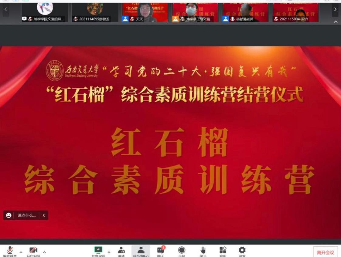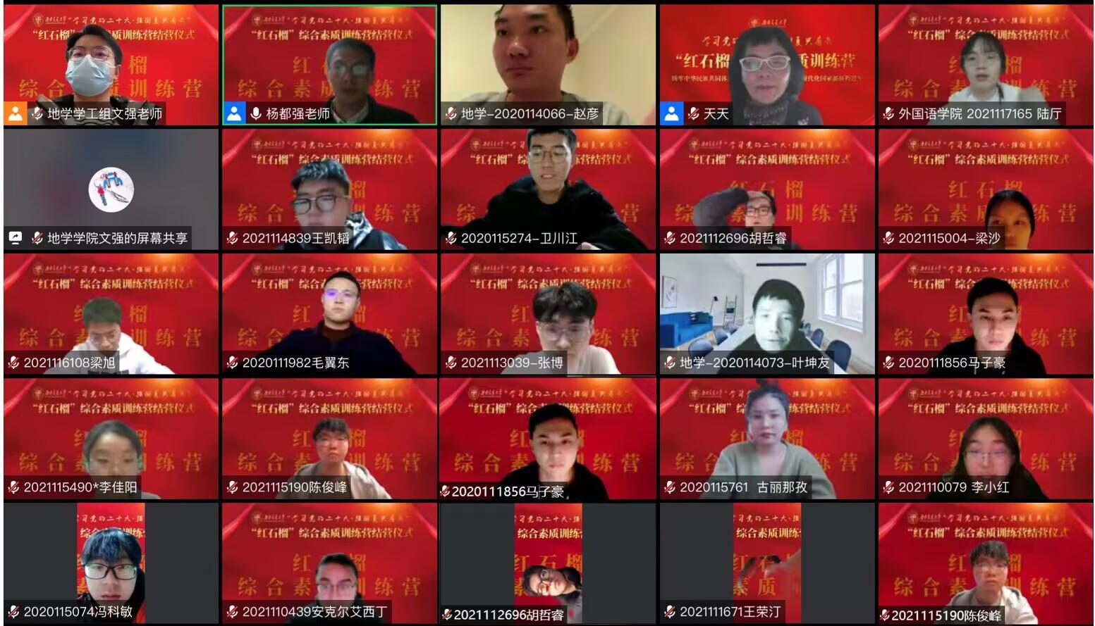 最后,全体“红石榴”训练营成员一起“云”合影后,2022年“红石榴”综合素质训练营圆满结营。