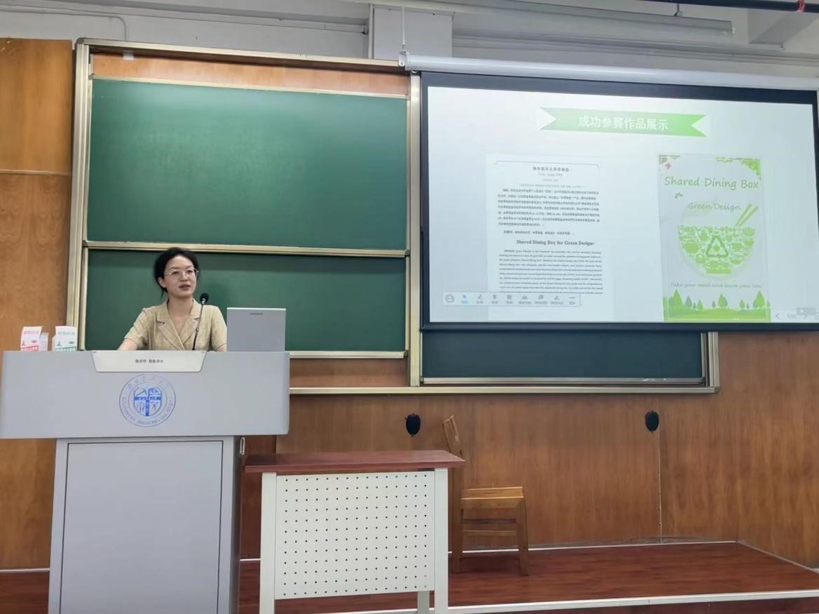 环境与可持续发展创意设计大赛宣讲会于5月7日下午2:00在X4154举行。硕士研究生任昕芸受赵锐老师委托进行本次宣讲。会议主持人简短介绍大赛背景后,任昕芸对本次大赛做简要介绍,分享了自己对大赛的认识和看法,并具体说明了研究背景、实验设计、作品制作、要求等各个要点。