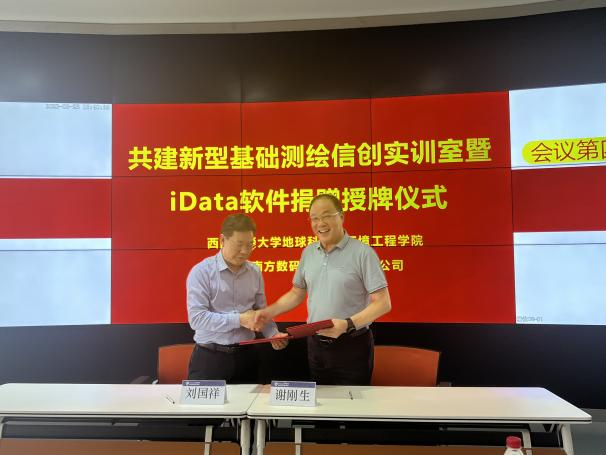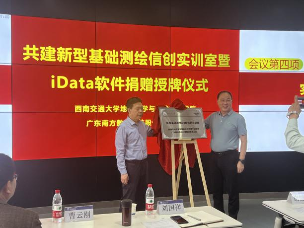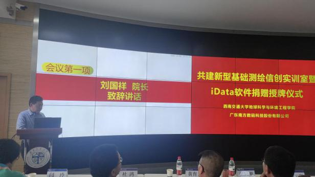 2023年5月23日下午,bevictor伟德官网bevictor伟德官网与广东南方数码科技股份有限公司(以下简称“南方数码”)在bevictor伟德官网犀浦校区X4243会议室举行了新型基础测绘信创实训室暨iData软件捐赠授牌仪式及主题讲座。参加本次活动的领导和嘉宾有:南方数码集团总部谢刚生总经理、南方数码渠道发展部张巨林总监、南方数码成都分公司王建总经理、bevictor伟德官网地球科学与环境工程刘国祥经理、测绘遥感信息系曹云刚主任、张同刚副主任、测绘实验中心黄育龙主任等。