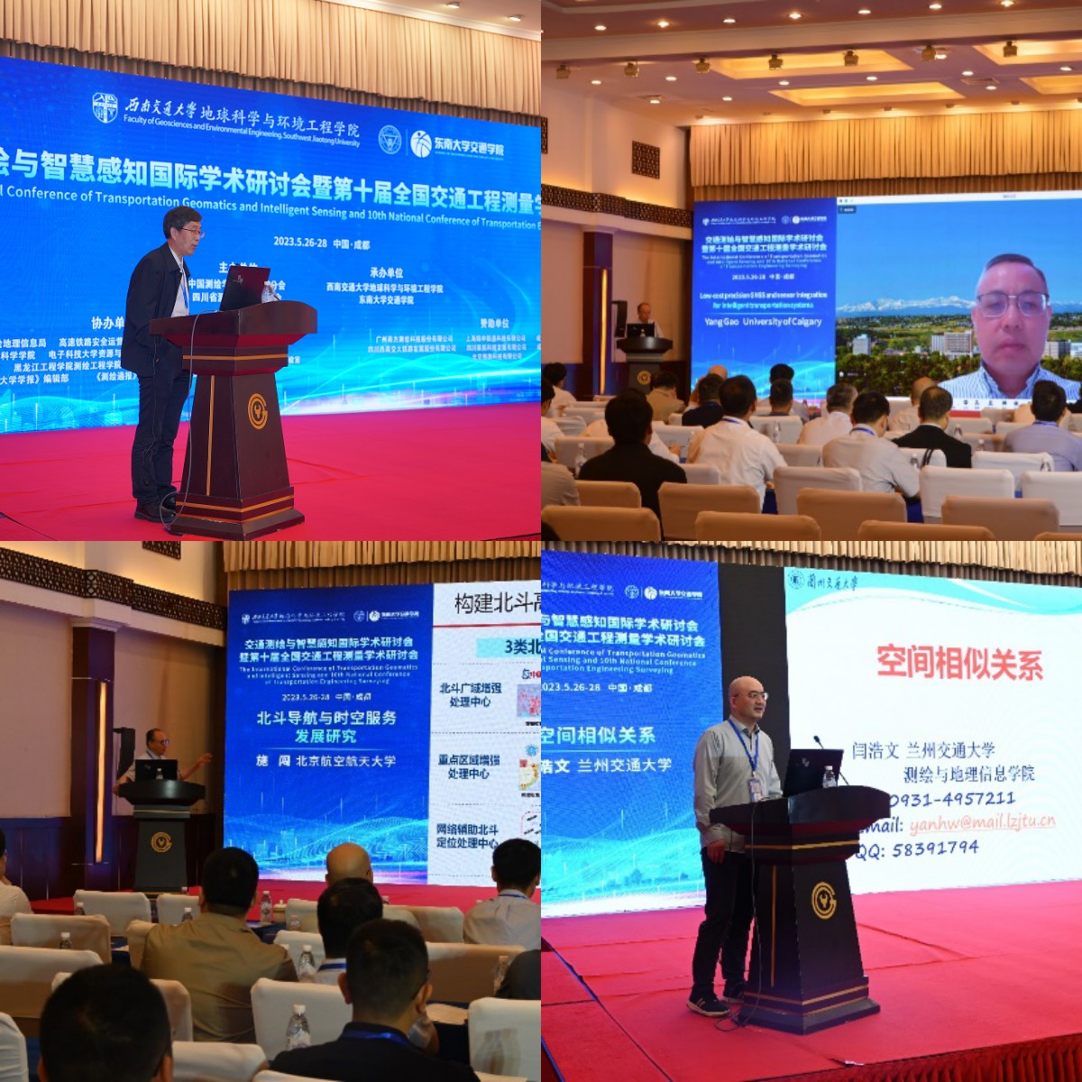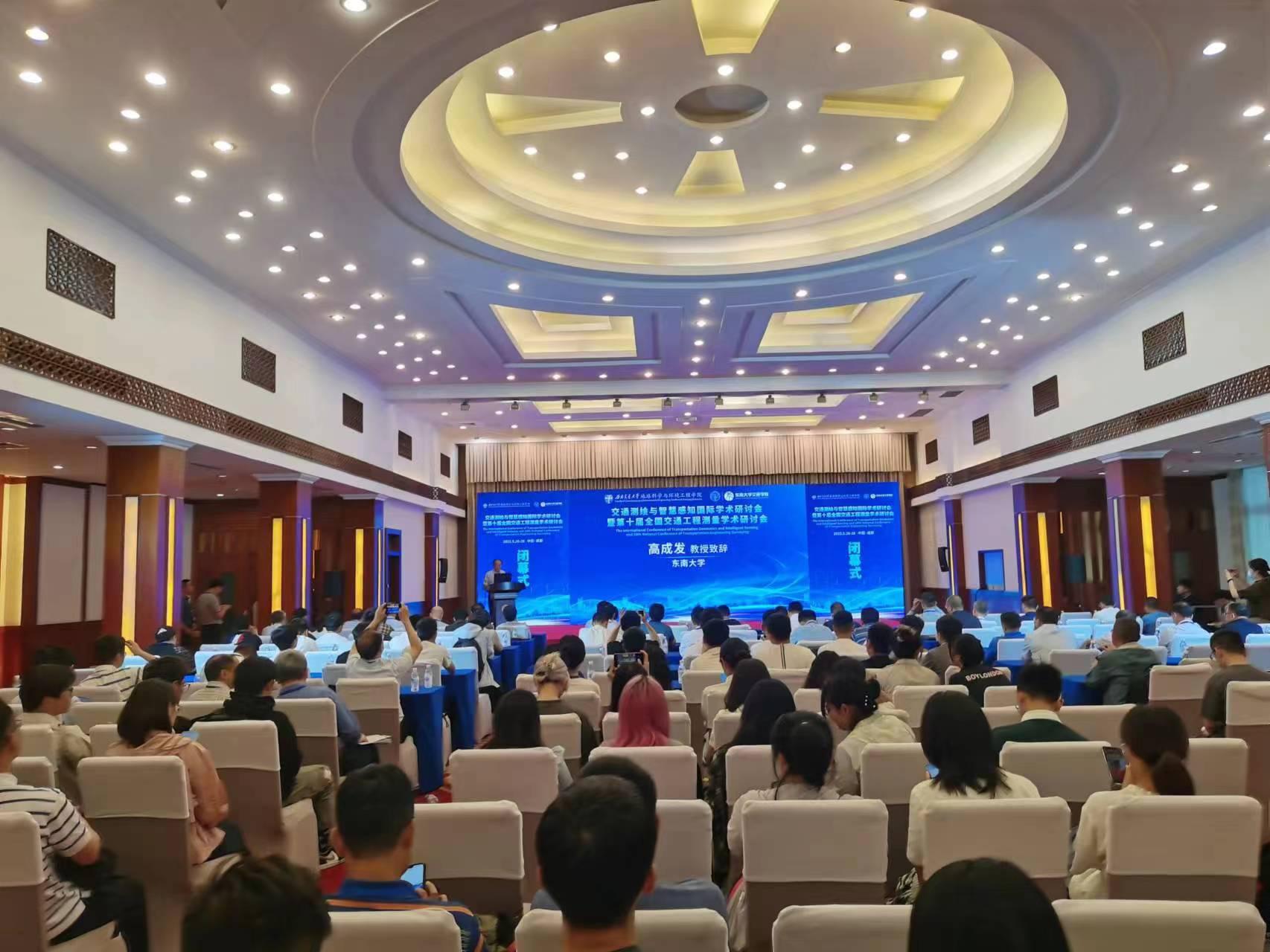 2023年5月26日至28日,“交通测绘与智慧感知国际学术研讨会暨第十届全国交通工程测量学术研讨会”在四川成都成功召开。此次会议由中国测绘学会工程测量分会、四川省测绘地理信息学会主办,bevictor伟德官网和东南大学联合承办,四川省测绘地理信息局等 8 家单位和《bevictor伟德官网学报》等 3个学术期刊编辑部协办,会议主题为“交通测绘与智慧感知”。来自中国、俄罗斯、德国、加拿大、伊朗、巴基斯坦等10余个国家的35所高校/科研院所和40家企事业单位参加了本次会议,参会总人数近300人,其中包括武汉大学龚健雅院士、中国测绘学会工程测量分会副主任委员以及交通测绘领域国内外知名专家学者等。