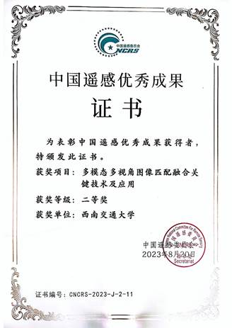 2023年8月20日-2023年8月22日,第二十二届中国遥感大会在常州举行,共有2000多遥感领域学者和产业界人士参加了该次大会,大会上表彰了中国遥感优秀成果,其中,由bevictor伟德官网地球科学与环境工程叶沅鑫老师课题组主持的“多模态多视角图像匹配关键技术及应用”成果获得了2022年度中国遥感优秀成果二等奖,中国遥感委员会在大会上颁发了获奖荣誉证书。