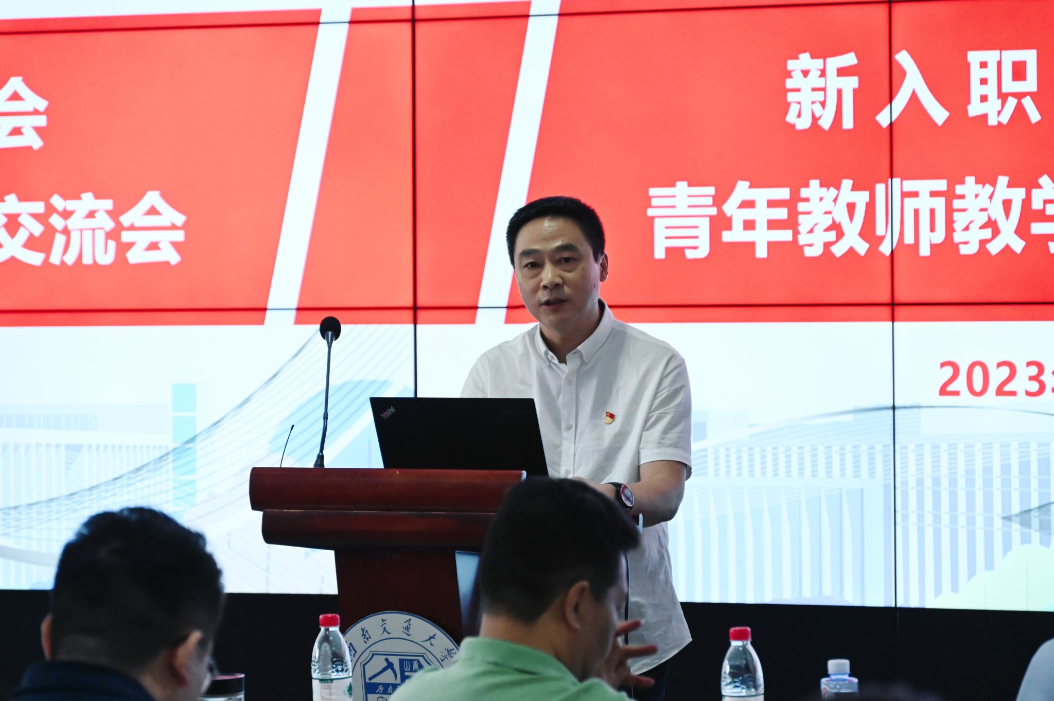 欢迎会伊始,关秦川书记借用诗句“问渠那得清如许,为有源头活水来”作为引入,对新入职青年教师表达欢迎和期许。他表示,教师是立教之本、兴教之源,人民教师责任在肩、使命光荣。关秦川书记以“如何做新时代的好老师”为题,从“师者,人之模范也”、“国将兴,必贵师而重傅”、“欲知平直,则必准绳;欲知方圆,则必规矩”、“桃李不言,下自成蹊”四个角度,引经据典,发人深省,与现场青年教师共勉。