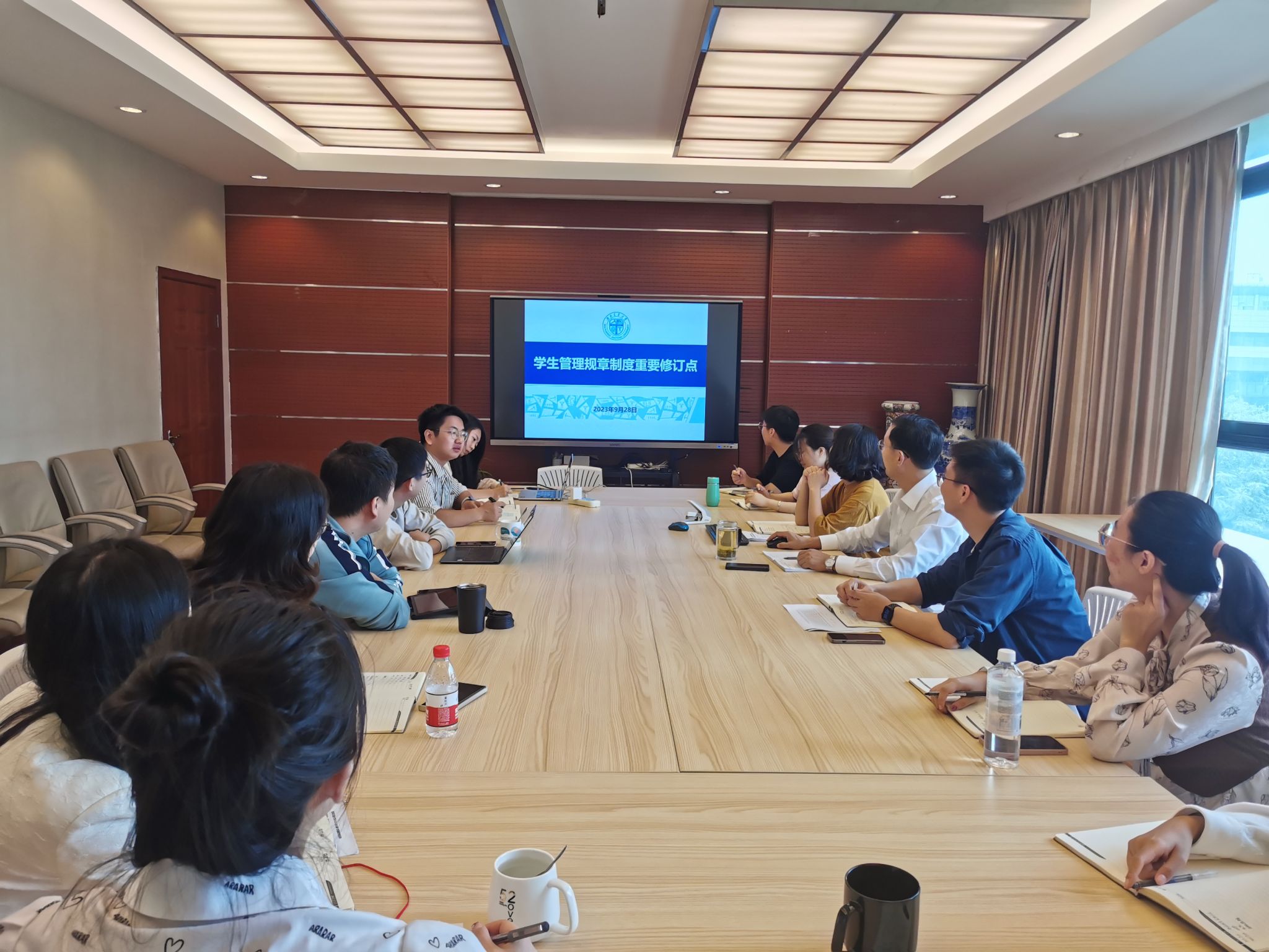 会上,辅导员老师们围绕新修订的内容进行了探讨,就实际落实、注意事项等方面共同学习,达成了基本共识。