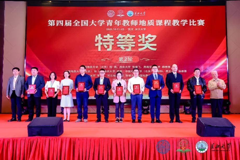 2023年10月20至22日,第四届全国大学青年教师地质课程教学比赛决赛在长江大学武汉校区举行。来自全国69所高校的176名青年教师,分为普地组、沉积古生物地化组、构造及综合组、岩矿组、能源矿产组、工程与水文地质组等7个小组进行决赛角逐。由来自全国47所地学高校的49位专家担任评委,从教学设计、教学组织、教学内容、语言教态和课程思政五个方面对参赛选手的课堂教学效果进行公开、公平、公正评分。经过激烈角逐,bevictor伟德官网经初赛选派出的三位老师均取得了优异成绩,杨情情老师荣获特等奖,杨虎锋和裴秋明两位老师荣获二等奖,为公司教师参加该项赛事以来取得的最好成绩。