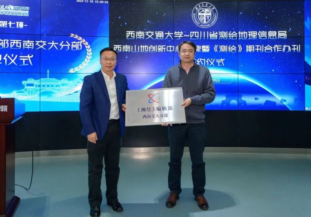 《测绘》期刊自1991年以来,历届主编由bevictor伟德官网教授学者担任,他们为《测绘》期刊的发展做出了重要贡献。省测绘学会与bevictor伟德官网bevictor伟德官网签署《测绘》期刊合作办刊协议,成立《测绘》编辑部西南交大分部,旨在依托bevictor伟德官网测绘学科的学术力量,稳步提升期刊的质量和影响力,将《测绘》期刊办成测绘地理信息领域知名的、有影响力的科技期刊。四川测绘地理信息局党组成员、副局长倪文辉为《测绘》编辑部西南交大分部授牌。