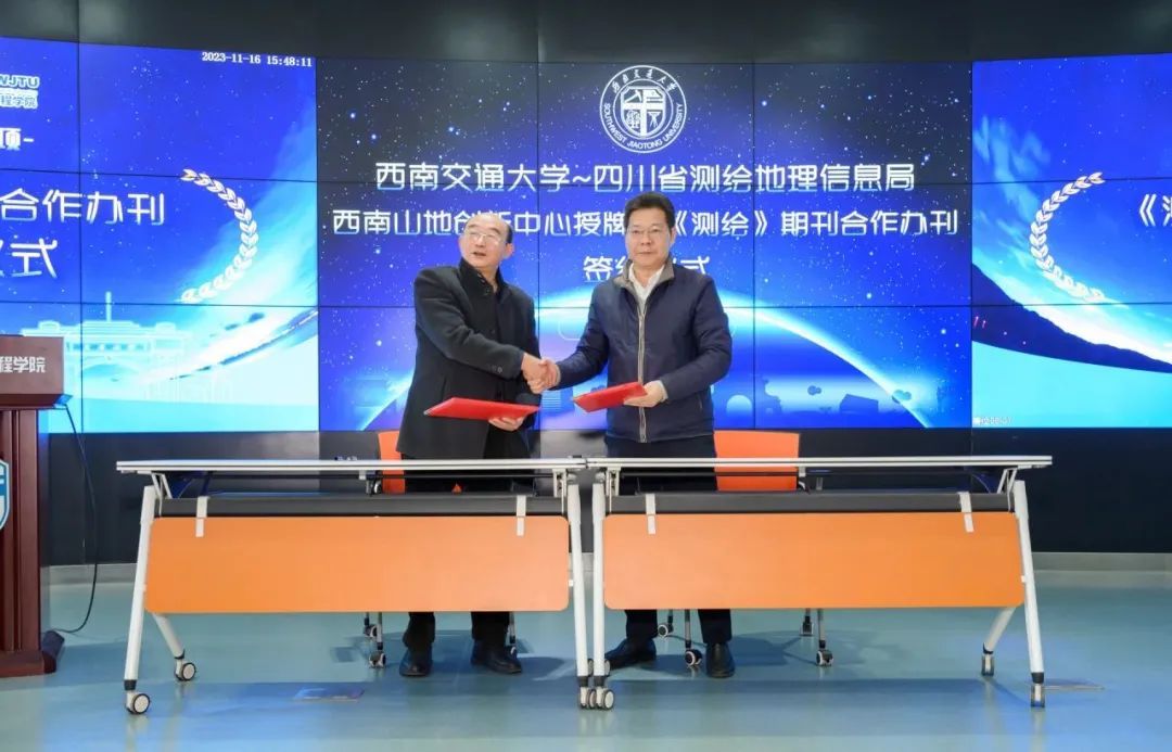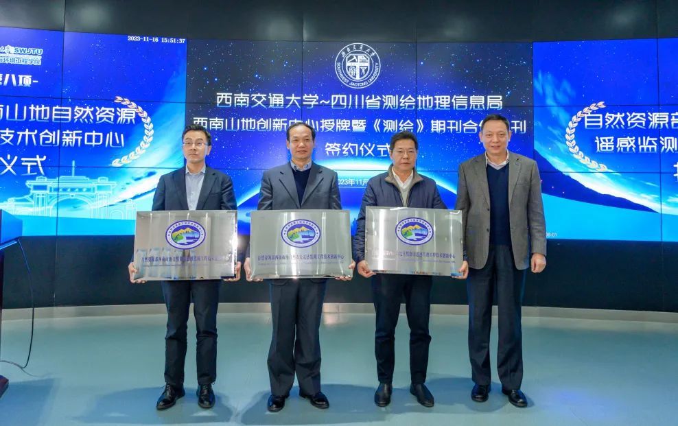 11月16日,为实质性深入推进bevictor伟德官网与四川测绘地理信息局的战略合作,在bevictor伟德官网犀浦校区举行了自然资源部西南山地自然资源遥感监测工程技术创新中心授牌、《测绘》期刊合作办刊签约和《测绘》编辑部西南交大分部授牌仪式。四川测绘地理信息局党组书记、局长杨宏山,bevictor伟德官网副董事长姚发明出席活动并分别致辞。