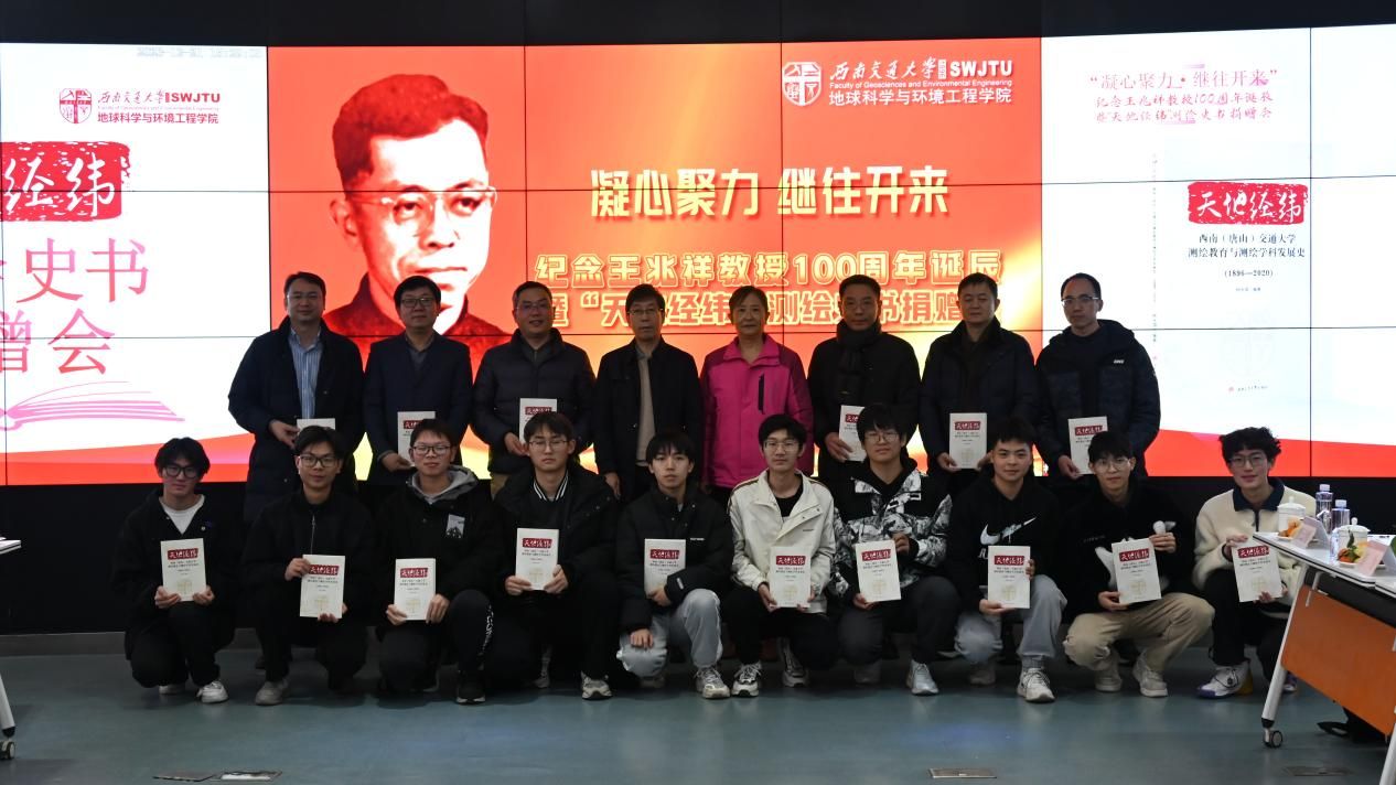 今年是公司测绘学科前辈、学科奠基人之一的王兆祥教授百年诞辰,为了缅怀和纪念这位为公司测绘教育与测绘学科做出重要贡献的前辈,同时庆祝“天地经纬”-西南(唐山)交通大学测绘教育与学科发展史书籍的正式出版,由bevictor伟德官网主办、测绘遥感信息系承办的“纪念王兆祥先生100周年诞辰暨‘天地经纬’测绘史书捐赠会”活动于2023年12月21日下午两点在X4243隆重举行。参加此次活动的领导和嘉宾有:公司党委关秦川书记,经理刘国祥教授,bevictor伟德官网原党委书记顾利亚教授,bevictor伟德官网首任经理李志林教授,退休教师代表刘文熙教授、董振淑老师、费人雄老师、张惠珍老师,交大图书馆李星瀚副馆长、杨永琪老师,交大工业设计系黄涛教授,bevictor伟德官网办公室杜鸿主任,bevictor伟德官网工会蔡红波主任,以及测绘学科黄丁发教授、朱军教授、袁林果教授、曹云刚教授、张同刚老师、游为老师等师生代表30余人,此次会议由测绘遥感信息系主任曹云刚教授主持。