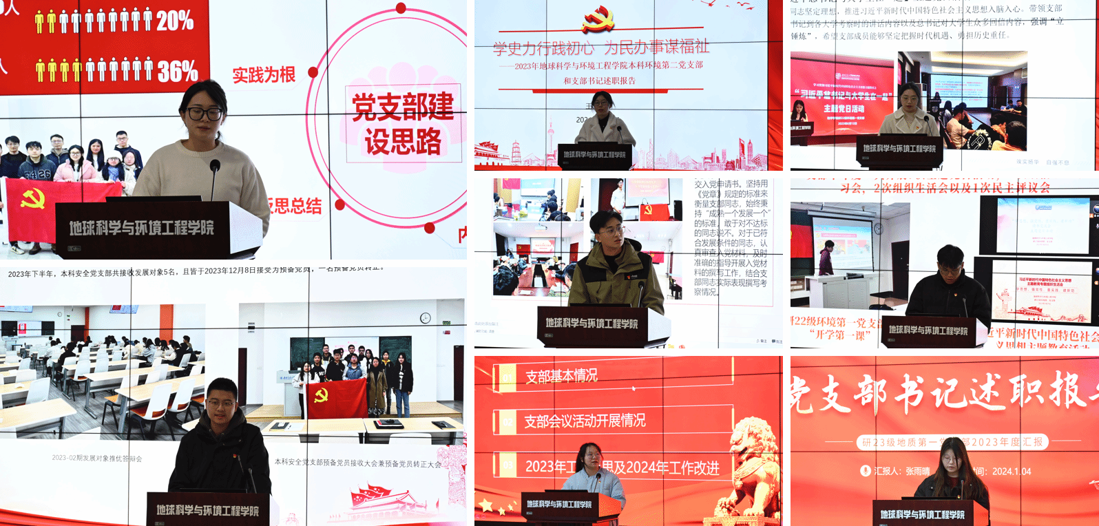 员工党支部书记随后作了述职汇报,重点集中在员工党支部的制度建设、支部学习与活动开展情况,尤其是学习二十大、主题教育开展情况以及支部特色亮点方面。各本、硕、博党支部书记代表各自结合自己的专业年级特点,展示了员工党员在发挥学科特色、致力服务师生方面、创新党员管理制度等方面的优秀表现。