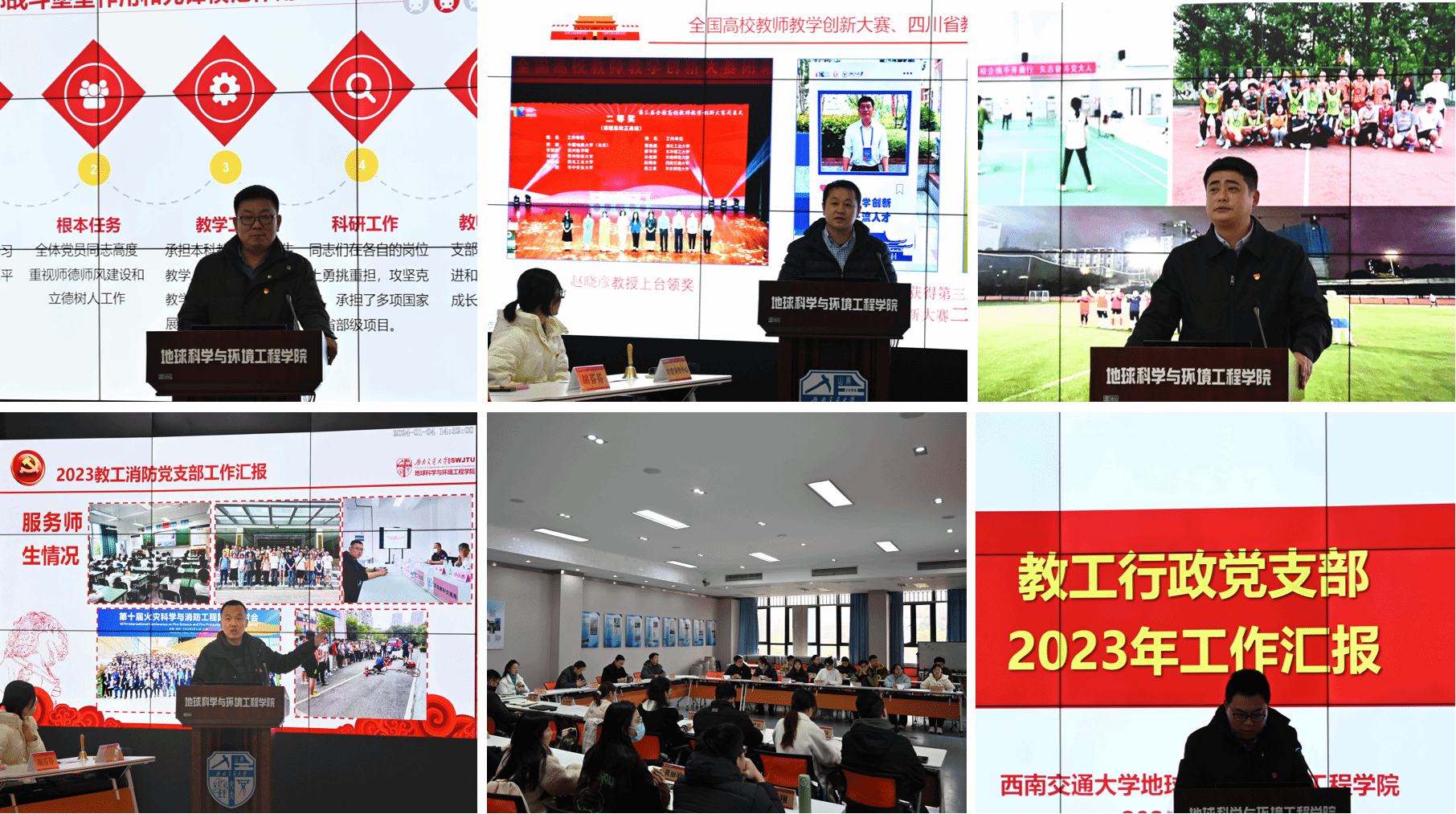 党委书记关秦川分别对教工党支部和员工党支部进行总结。关书记首先对教工党支部过去一年的工作给予了充分肯定,尤其在理论学习、教学科研、师德师风等方面均取得了显著成效。关书记强调,面对新时代的挑战和机遇,在公司的新一轮发展中,各教工党支部要继续发挥党建引领作用,结合各支部特点,聚焦团队建设、科研学术和创新服务,讲好“地学文化故事”,努力开创公司党建工作新局面。