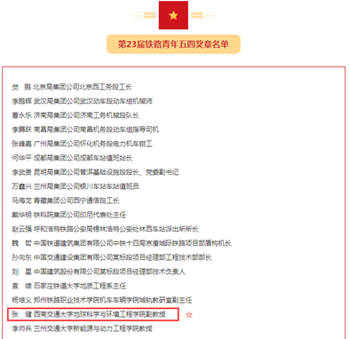 5月4日,为充分发挥青年典型模范带头作用,引领和激励广大青年在实现铁路高质量发展进程中接续奋斗,全国铁道团委发布颁授公司张健老师为“第23届全国铁路青年五四奖章”。
