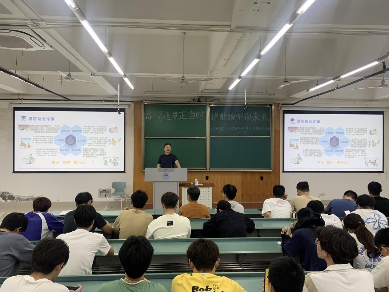 除此以外,郑波还讲述了常见的就业诈骗类型及求职防骗五招提醒同学们安全就业,谨防诈骗。