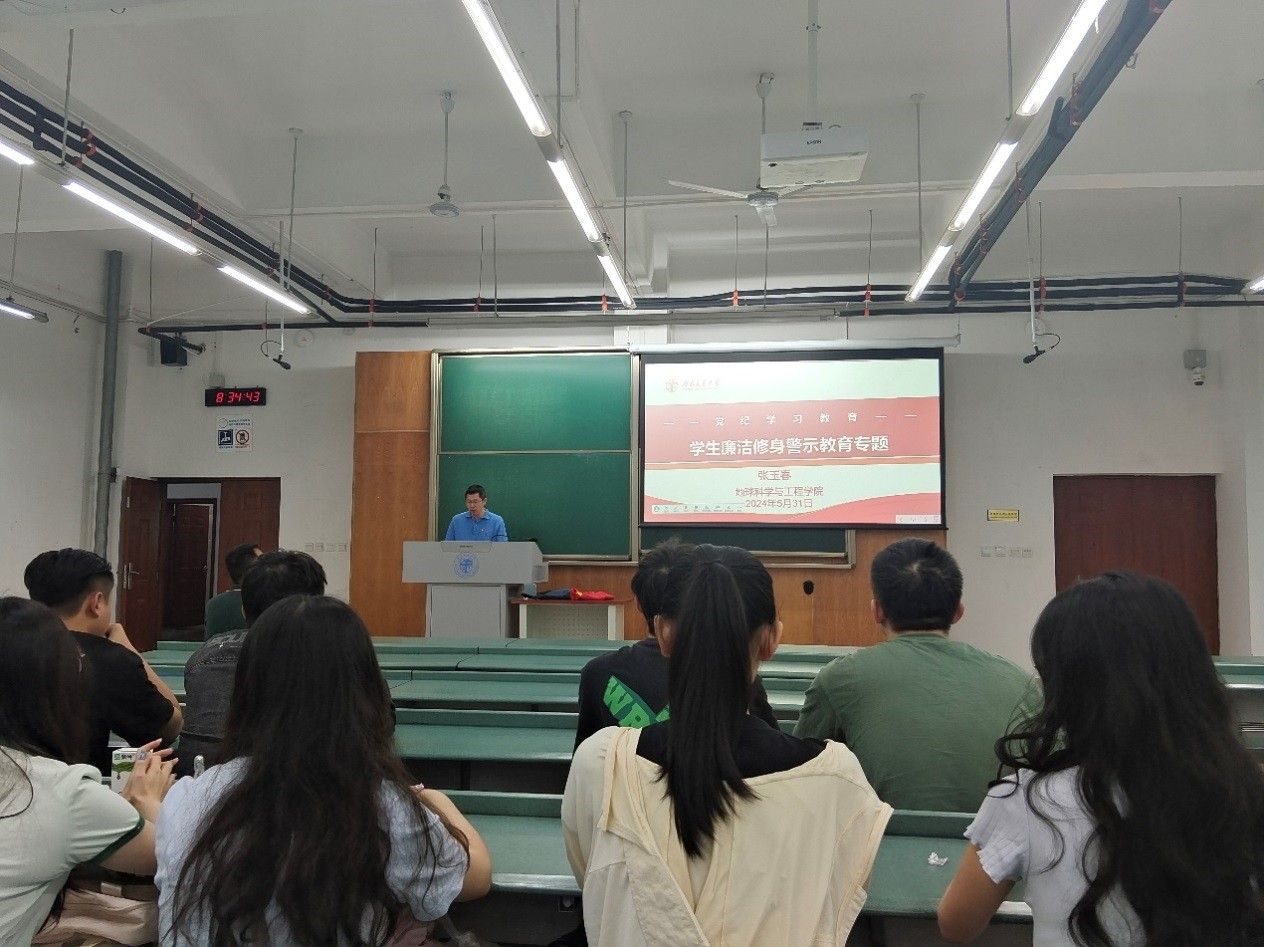 随后,张玉春同志结合党员违规违纪违法的典型案例,深入剖析了违纪违法行为的根源和危害,教育引导党员同志要引以为戒,时刻警醒自己,不越雷池一步。他强调,党员同志要时刻保持对党规党纪的敬畏之心,做到言行一致,表里如一。在谈到如何加强自我约束、提高免疫力时,张玉春同志指出党员同志要自觉接受党和群众的监督,不断增强党性修养和道德修养,树立正确的世界观、人生观和价值观,同时要求全体师生党员要牢固树立底线意识,自觉抵制各种诱惑和腐蚀,始终保持清正廉洁的政治本色。