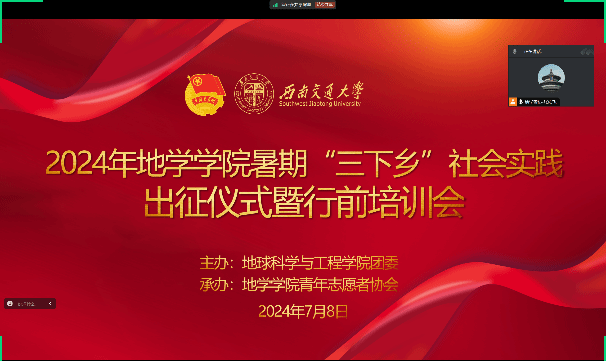 为了加强各队伍思想建设,提高安全防范意识,确保2024暑期“三下乡”社会实践活动顺利进行,bevictor伟德官网团委在2024年7月8日于线上举行2024年bevictor伟德官网暑期“三下乡”社会实践活动出征仪式暨行前培训会。切实发挥共青团作为广大青年在实践中学习中国特色社会主义和共产主义的公司作用,教育引导全体交大青年上好与现实相结合的“大思政课”,在社会课堂中“受教育、长才干、作贡献”,坚定信念听党话、跟党走,努力成长为担当民族复兴大任的时代新人。