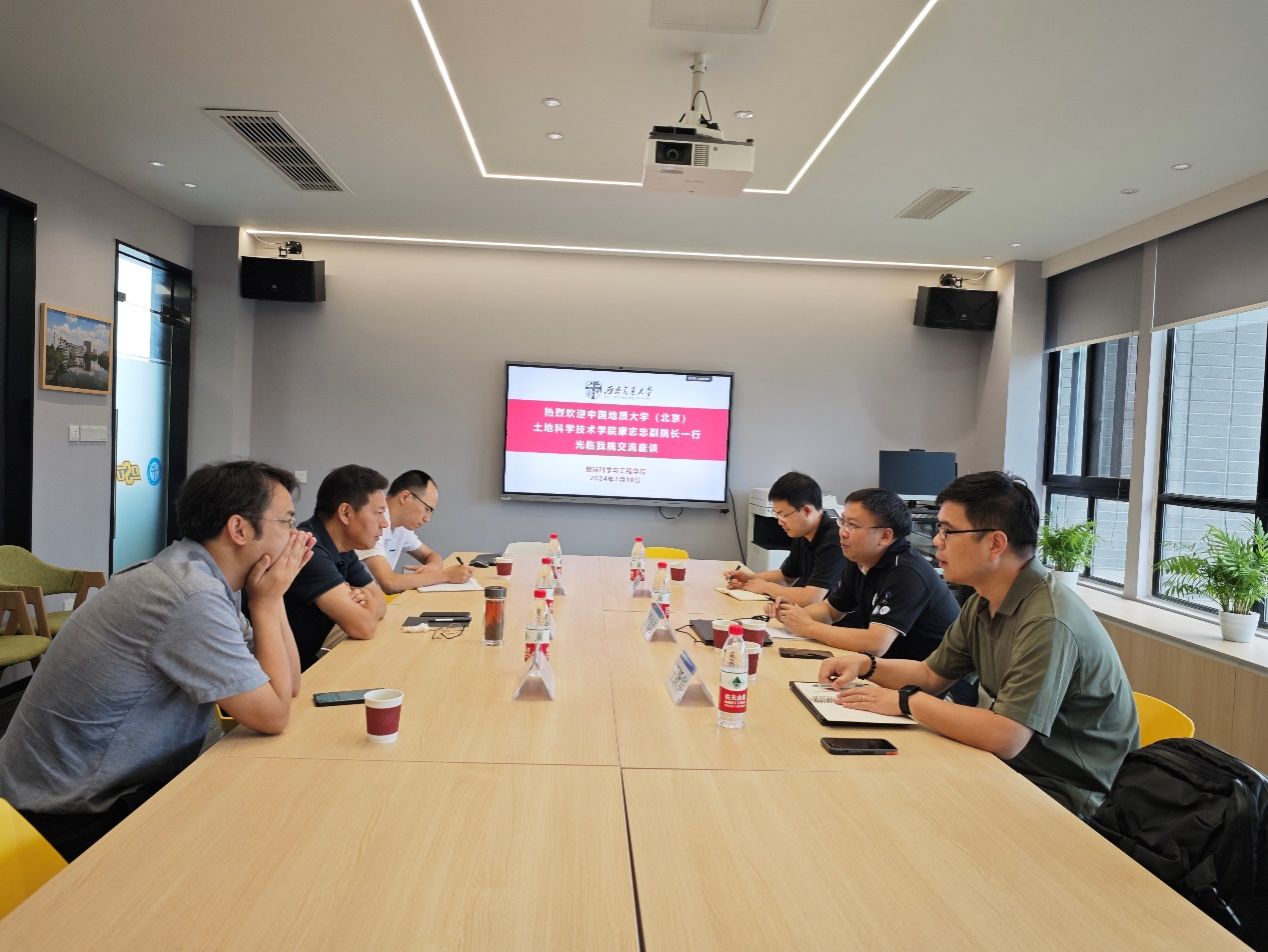7月10日上午,中国地质大学(北京)土地科学技术公司副经理康志忠、遥感地理信息工程系主任王跃宾、遥感地理信息工程系副主任王跃东光临公司交流座谈,bevictor伟德官网经理刘国祥、经理助理曹云刚、测绘遥感信息系教师游为参加座谈。