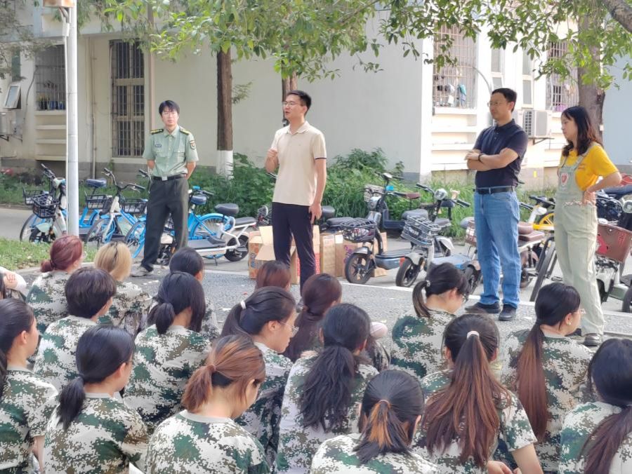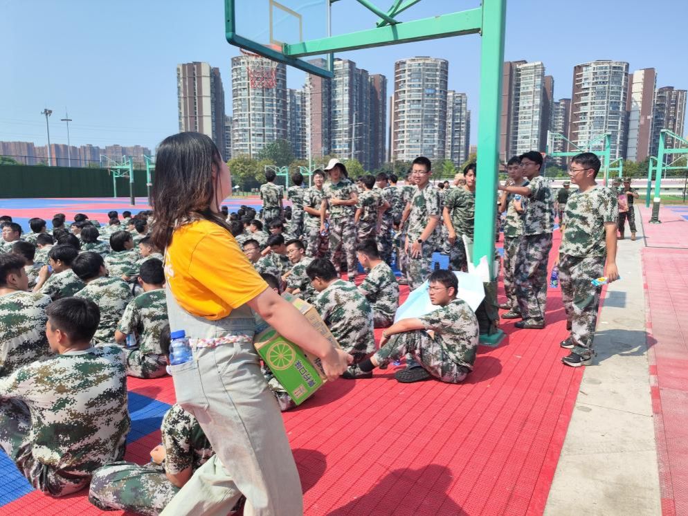 两位22级辅导员与教官和同学们行了深入交流,详细了解了同学们的训练进展和身体状况,叮嘱大家在积极训练的同时注意身体健康,防止中暑或其他意外情况的发生,组织同学们领取公司为大家准备的运动饮料和饼干。同学们在接受慰问时,也对公司领导的关心和支持深表感谢。