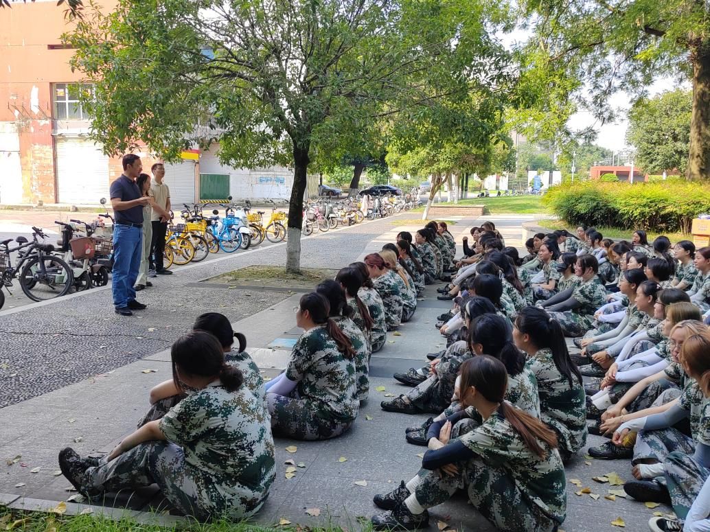 郑波书记首先对同学们高昂的军训热情、良好的精神面貌和端正的训练态度表示高度的肯定和赞扬,同时表示希望同学们珍惜这次军训的美好经历,在今后的学习和生活中继续保持军训中表现出来的坚韧不拔的意志、顽强拼搏的作风、勇往直前的气概和团结互助的精神。杨都强老师在慰问中表示,希望同学们借此机会养成不怕吃苦、严格训练的优良作风,将军训的成果转化成未来学习生活的强大动力,将余下的老员工活过得更加充实,坚韧且精彩。