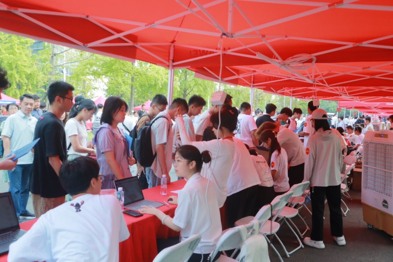 公司党委书记关秦川、党委副书记郑波、团委书记杨都强等一行来到现场看望慰问迎新工作人员,并与前来报到的员工与家长亲切交流。