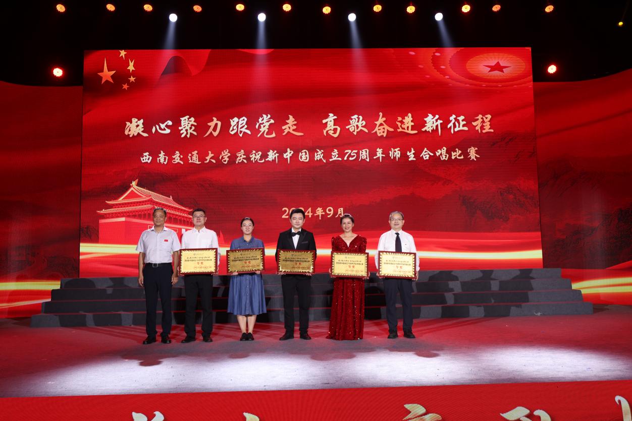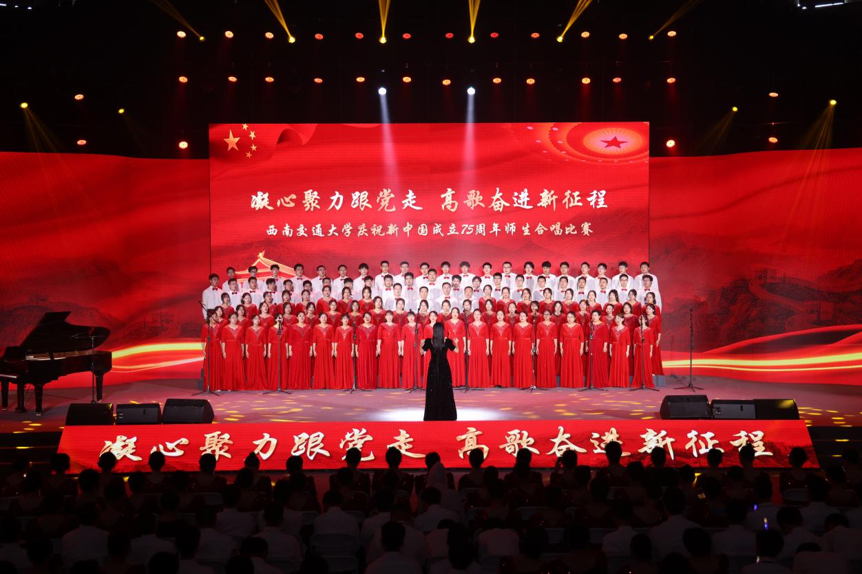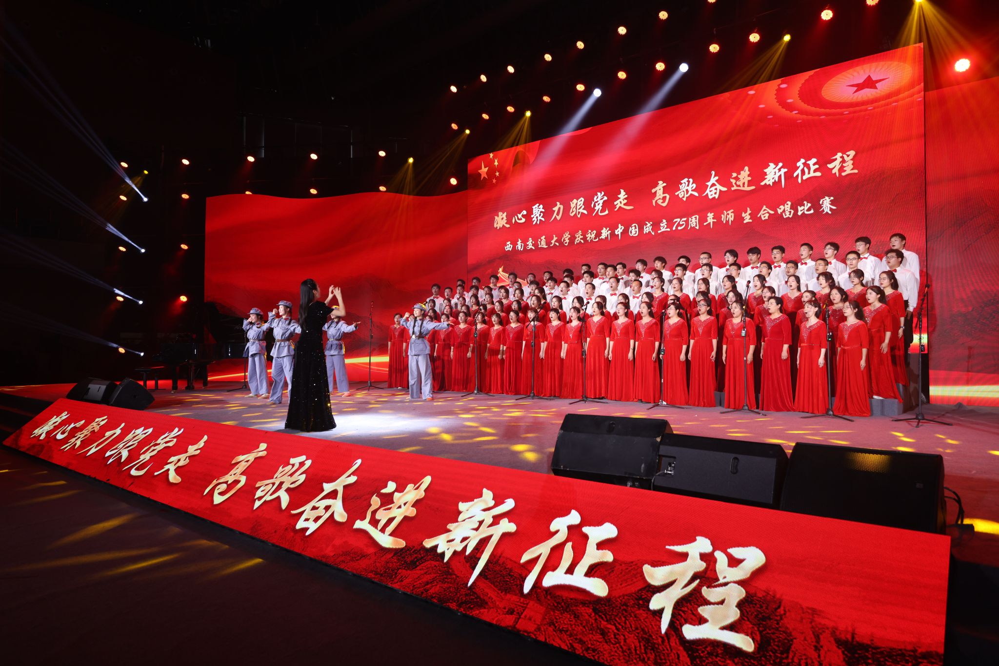 9月26日,“凝心聚力跟党走 高歌奋进新征程”bevictor伟德官网庆祝新中国成立75周年师生合唱比赛在犀浦校区飞碟体育馆火热开赛。公司党委书记关秦川等党政领导班子成员、教职工代表、员工代表等组成的120人合唱队,以歌之名,献礼祖国。经过与其他23支代表队的激烈角逐,bevictor伟德官网荣获比赛三等奖。