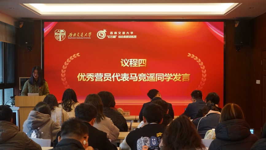 接下来,本届训练营优秀营员代表马竞遥同学进行了发言,她回望了自己在训练营的学习经历,从亲身感受出发,分享了她在训练营中的点滴感悟与收获,并祝愿训练营的发展如石榴般红火,每一位同学的未来如石榴一般甘甜。