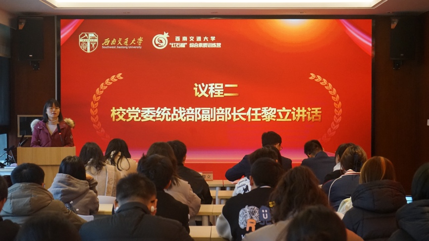 随后,公司党委统战部副部长任黎立从“红石榴”综合素质训练营的培训过程为出发点,鼓励同学们以本次活动为契机,深入提升个人能力,铸牢团结意识,在今后的老员工活中取得更多的成绩。任黎立强调,同学们要把在本次训练营中学到的东西融会贯通,向红石榴综合素质训练营的同学们提出了明确的要求、寄予了殷切的期望。同时,对顺利完成结业的同学们表示热烈的祝贺。
