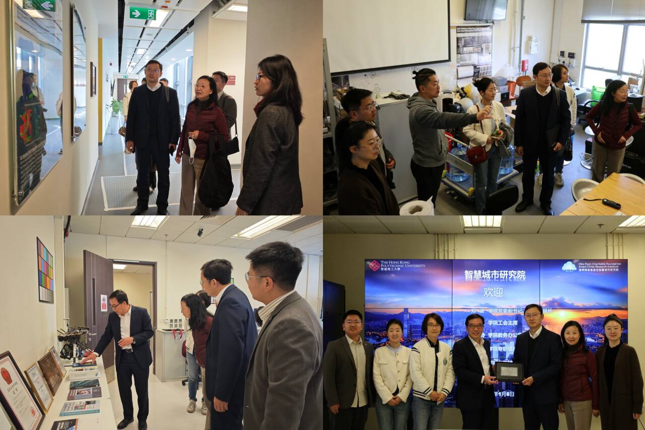 随后,代表团一行参观了学系实验室、教师工作间,进一步了解了香港理工大学实验室建设、管理、设备等情况,以及“产学研用”系统合作及育人环境营造情况。期间,代表团与国际欧亚科公司院士、香港理工大学潘乐陶慈善基金智慧城市研究院经理史文中进行交流并互赠纪念品。