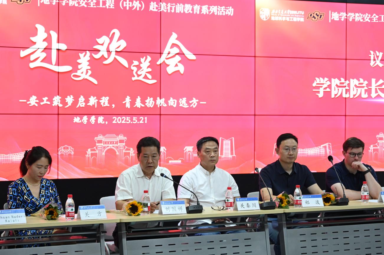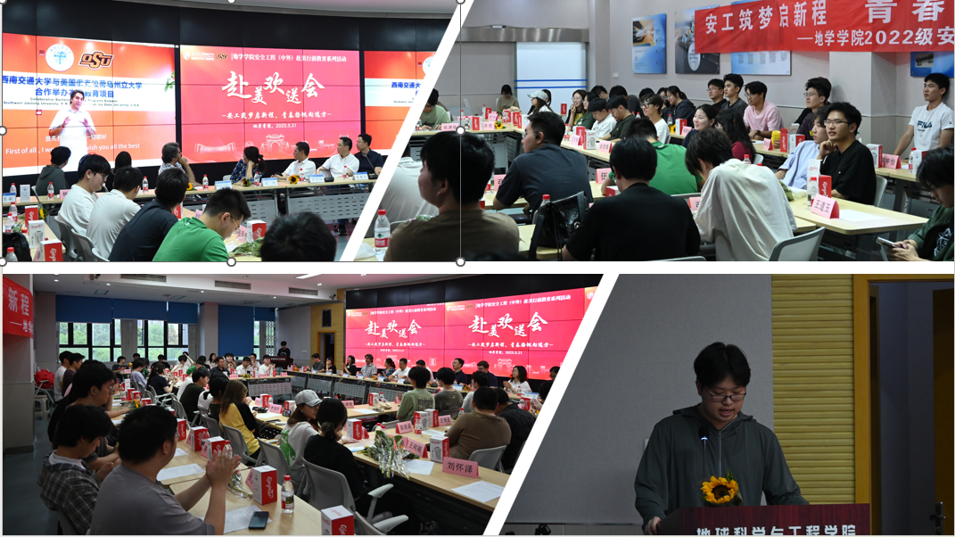 小满时节,bevictor伟德官网犀浦校区的榕树在暖风里舒展着新叶,一场满载祝福与期许的欢送会,就在这酝酿着丰收与离别的时节,于校园里悄然拉开帷幕。2025年5月21日晚7点,2022 级安工出国系列活动之 “安工筑梦启新程,青春扬帆向远方” 赴美欢送会在X4243举行。党委书记关秦川、经理刘国祥、党委副书记郑波、合作办学项目主管关方、项目教学主管刘静、专任教师 Ehsan Naderi Kalali 、Jamie F. Townsend ,以及项目部的郑容、陈茜、牛小会、干敏,辅导员孙惠敏以及22级安全工程(中外)全体同学参与本次活动。本次欢送会由22级安全工程(中外)专业员工马健迅主持。