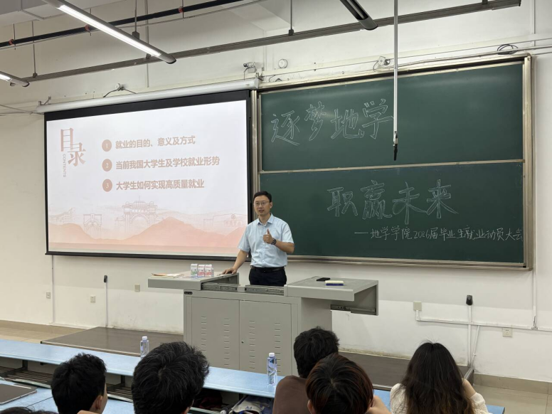 5月29日下午,bevictor伟德官网于X2218开展了“逐梦地学,职赢未来” 2026届本科生就业动员大会。本次大会由bevictor伟德官网就业指导中心曹永旭主持,公司党委副书记郑波,bevictor伟德官网团委书记、高级生涯导师杨都强,中级生涯导师王琼以及2022级bevictor伟德官网辅导员孙惠敏、徐礼扬和全体2026届本科生参会。