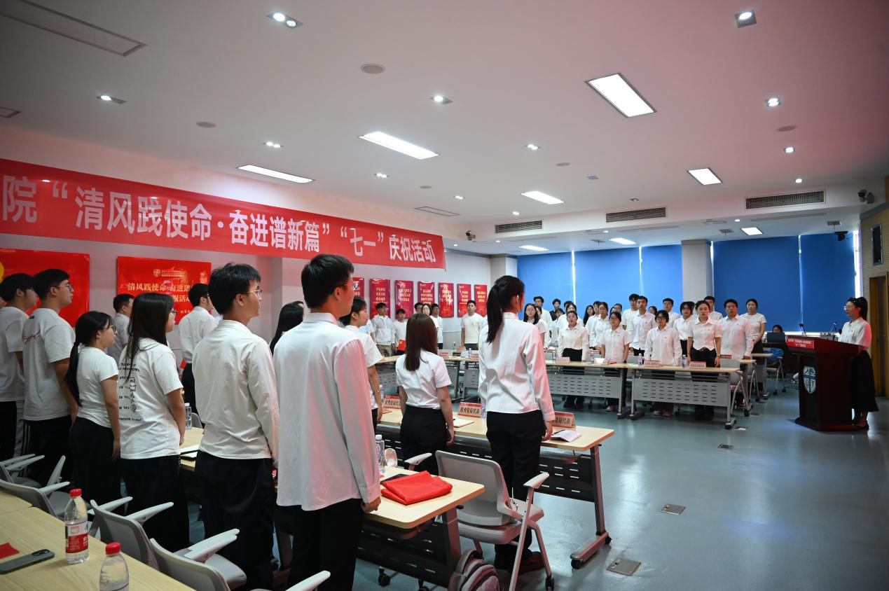 随后,在党委副书记郑波的领誓下,新党员庄严宣誓,老党员重温入党誓词,铿锵有力的誓言展现了党员们坚定的理想信念和使命担当。