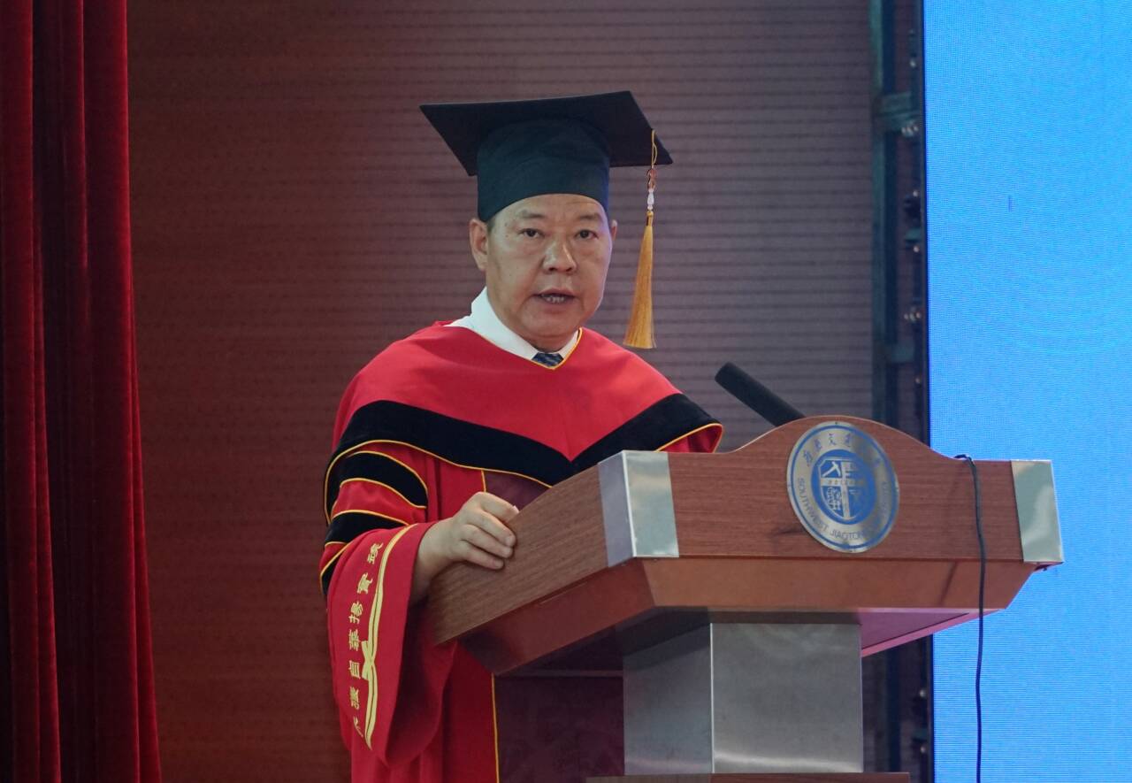 经理刘国祥致辞。他向顺利完成学业、开启人生新征程的同学们表示热烈祝贺,向悉心指导同学们的老师们表示衷心感谢,向在身后默默付出的家长朋友们表示诚挚敬意。他围绕“时代之问”“时代之责”“时代之行”,向全体毕业生提出三点殷切期望,希望同学们胸怀家国,以格局与情怀回应时代之问,在服务国家与奉献社会中书写属于新时代地学人的时代答卷;深耕专业,以笃行与热忱担起时代之责,不畏惧、不迷茫,以敏锐的洞察力和果敢的行动力积极应对,将所学知识转化为解决实际问题的能力;锤炼身心,以坚韧与担当践行时代之行,以豁达的胸襟,在学习工作中,经风雨、见世面、壮筋骨、长才干。他祝福同学们在人生征途上,步履坚定,逐梦无悔,以奋斗的姿态书写无愧于时代、无愧于青春的精彩答卷,为以中国式现代化推进中华民族伟大复兴做出积极的贡献!