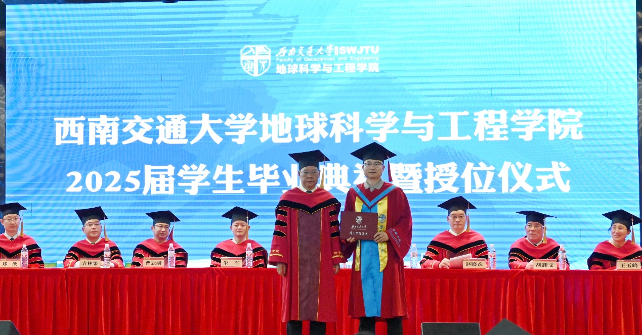 6月19日上午,2025届员工毕业典礼暨授位仪式在犀浦校区二食堂三楼隆重举行。公司党委书记关秦川,经理刘国祥教授,副经理朱军教授,副经理、地质工程系主任赵晓彦教授,测绘遥感信息系主任曹云刚教授,教师代表胡卸文教授、袁林果教授、王玉峰教授,各学科专业老师、班导师、机关各科室负责人、辅导员、2025届全体本硕博毕业生及员工家长参加典礼。本次典礼由公司党委副书记郑波主持。