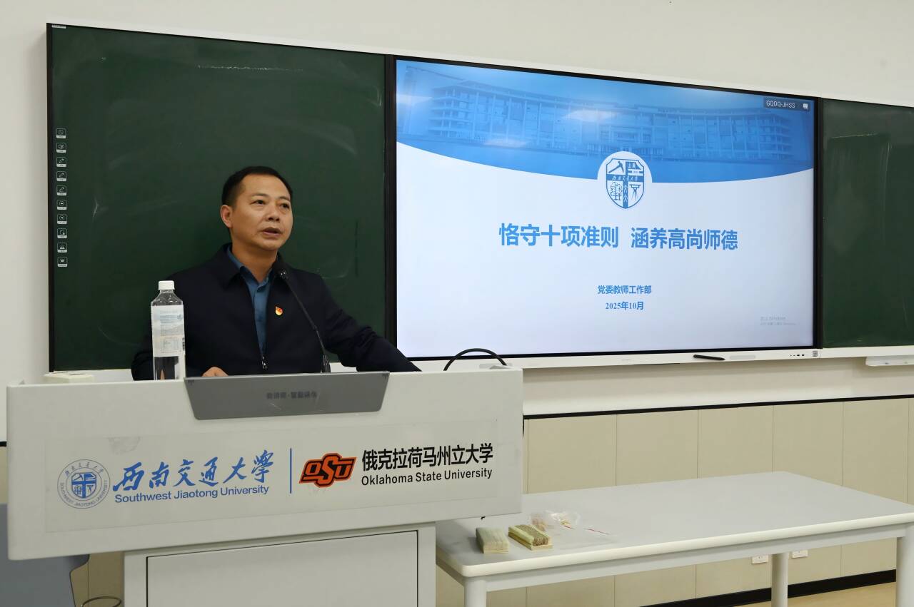 讲座围绕“以准则为尺,坚守标线”与“以案例为镜,筑牢防线”两个部分展开。郑简平书记聚焦师德师风建设的重要性、相关政策文件以及《新时代高校教师职业行为十项准则》等内容作了深入解读,结合生动实例强调教师须注重言行细节,规范从教行为,树立良好师德形象,始终将师德师风摆在教师队伍建设的首要位置。此外,他通过剖析典型违规案例,深刻阐释其不良影响与警示意义,引导全体教职工以案为鉴,筑牢思想防线,潜心教书育人,自觉遵规守纪。
