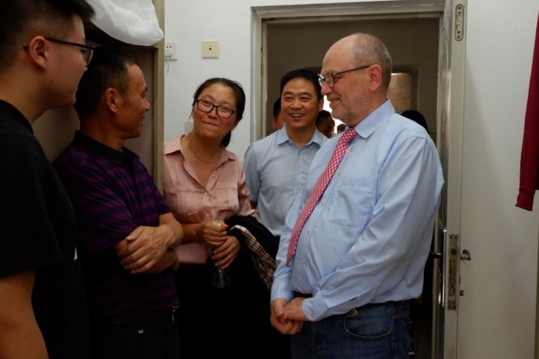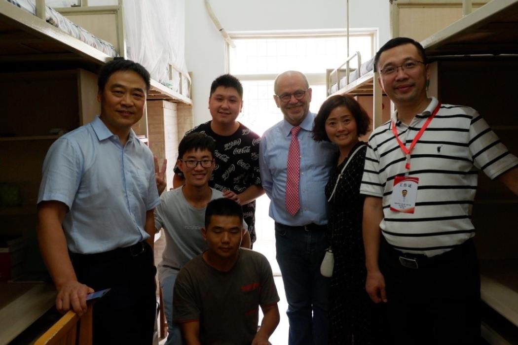 Plümer、党委书记关秦川、党委副书记傅尤刚,2019级本科生辅导员老师,党政办公室老师等共同走访了本科2019级新生宿舍。