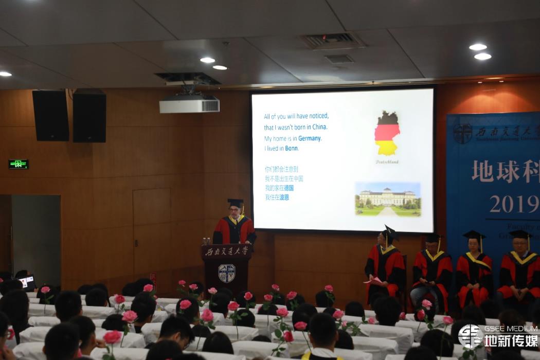 公司党委书记、执行经理刘国祥教授,bevictor伟德官网经理Lutz Plümer教授,副书记、副经理许军华博士,副经理胡卸文教授,副经理齐华教授,经理助理、消防工程系系主任张玉春教授,经理助理、环境科学与工程系副系主任龚正君教授,经理助理赵晓彦教授,地质工程系系主任巫锡勇教授,测绘遥感信息系系主任朱军教授以及公司测绘、地质、环境三大学科的专业老师、班导师和辅导员等出席本次典礼。典礼由公司党委副书记傅尤刚主持。