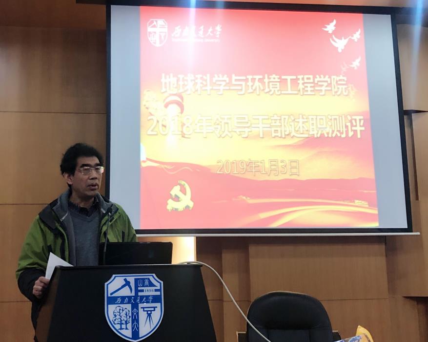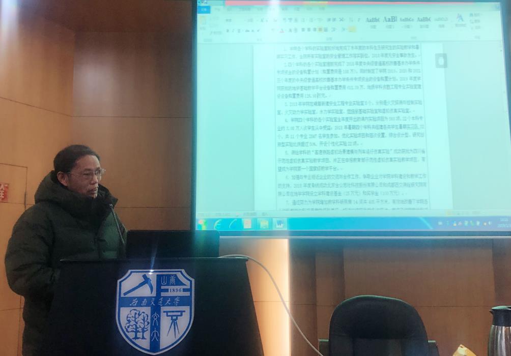 刘成龙进行2018年度个人述职。主要围绕工作实绩中的实验室建设与安全维护、实验室开展项目情况、与对口企业的交流与合作、教学科研场所使用情况等方面做工作汇报。