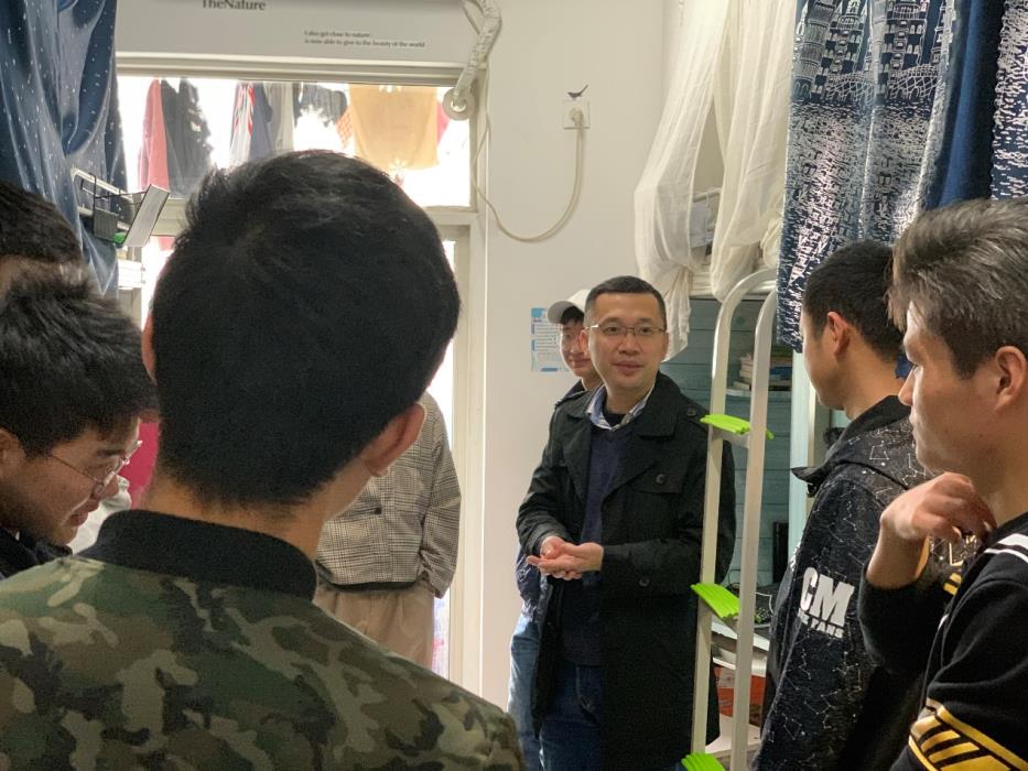 11月19日中午,公司党委副书记傅尤刚与2017级本科辅导员海迪拉、李国欣走访了2017级本科员工宿舍。