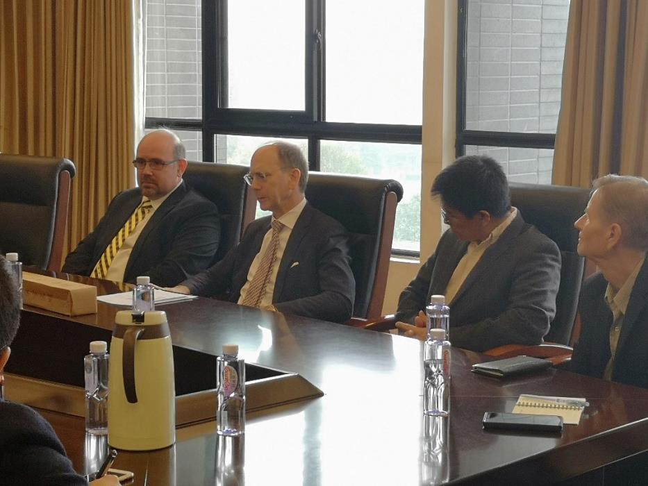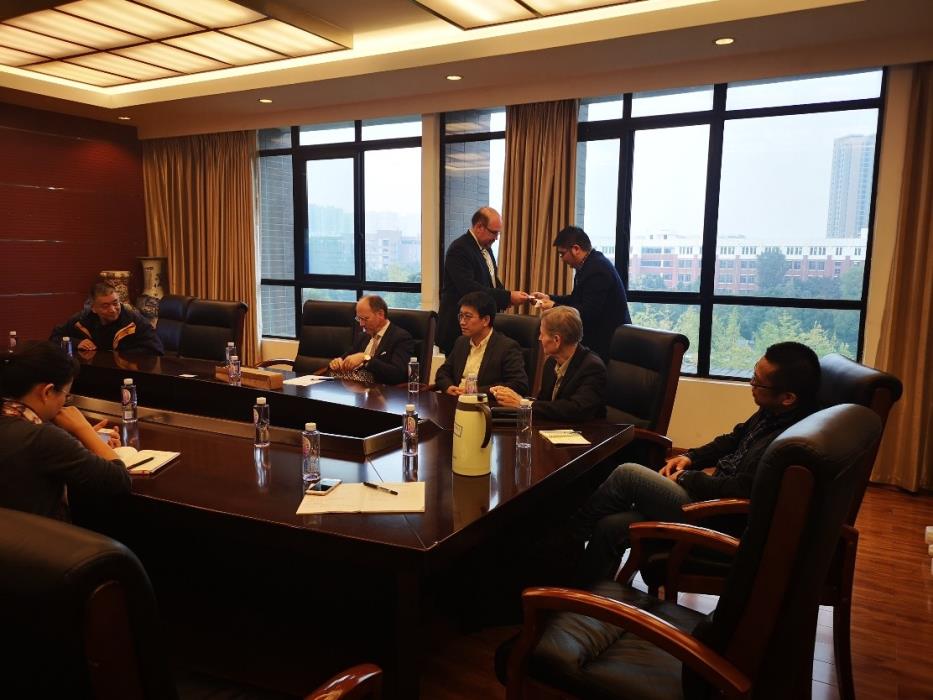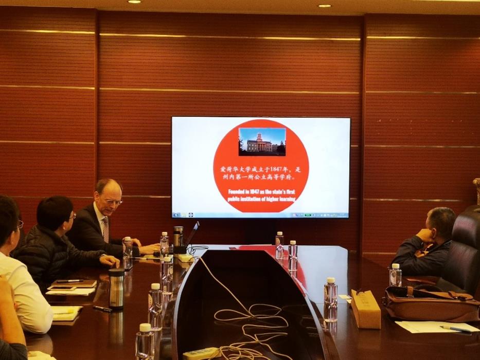 首先,爱荷华大学代表团成员先后做了自我介绍,并简述了此行的目的:旨在了解公司的教学规模、研究方向、教学资源等问题,寻求双方合作机会。