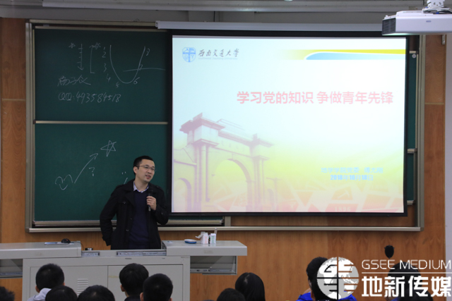 随后是党团知识讲座。傅尤刚围绕“我们为什么要入党,我们要了解党的哪些基本知识,我们向优秀党员学什么,怎样加入党组织,党和团是什么关系”五个方面进行讲解。傅尤刚着重讲解了“我们为什么要入党”这一方面。共产党为我国的发展做出了巨大贡献,在历史上产生了深远的影响。能够成为一名真正的共产党员是非常光荣的。傅尤刚讲述了优秀共产党员的事迹,并表示当今时代,在各行各业都有优秀共产党员的身影。随后,傅尤刚针对党团方面有关知识进行讲解。最后,傅尤刚指出,成为党员并非易事,需要经过层层选拔和考核。傅尤刚鼓励同学们向先进共产党员看齐,提高思想道德觉悟,艰苦奋斗,争取能够早日入党。
