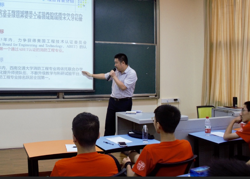 安全科学与工程专业专业介绍会在峨眉举行,由林鹏主讲。林鹏向同学们介绍了专业特点和学科发展情况。