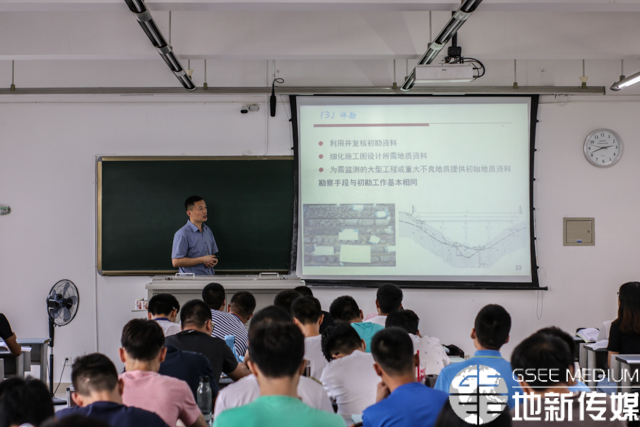6月8日下午第三讲,四川省交通运输厅公路规划勘察设计研究院总工办副总工程师马洪生,应邀在X1320,为bevictor伟德官网2015级地质工程系员工讲授《工程地质学》。
