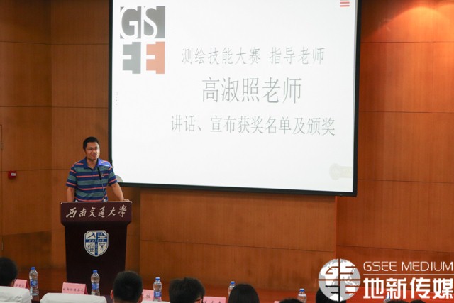 测绘技能大赛指导老师高淑照、地质技能综合应用竞赛指导老师刘园园、绿色创想科技竞赛指导老师陈钰、员工会指导老师李婧、环境与可持续发展创意设计大赛指导老师杨都强分别就自己负责指导的比赛讲话。他们提出低年级同学应该抓住机会不怕吃苦尽量参加建议,强调科技月活动对提升大家的环保、科创意识等的积极作用。随后王齐荣、傅尤刚和各比赛负责指导老师一起为获奖队伍颁奖。