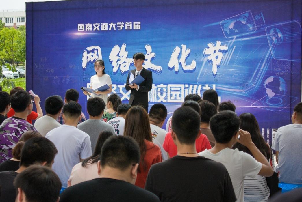 其后,西南交大校园网络小达人上台庄严宣誓,地新传媒主席宋梓荣领誓,“我宣誓;坚持依法上网、用网,不造谣、传谣、信谣,规范个人言行,恪守网络道德,纠正不良风气,构建清朗网络。引导网络舆论,传播正能量,加强文明意识,引领好风尚。自愿为网络文明建设做出自己的贡献。”