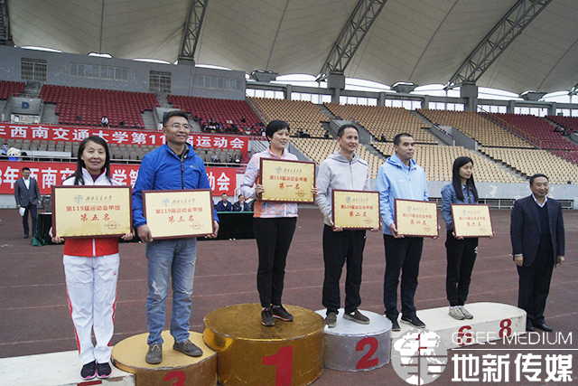 之后,郭立昌宣布“最佳组织奖”获奖单位并与高平一起为“最佳组织奖”获奖单位颁奖。交通运输与物流公司、电气工程公司及峨眉校区等众多团体都获得了运动会“最佳组织奖”。