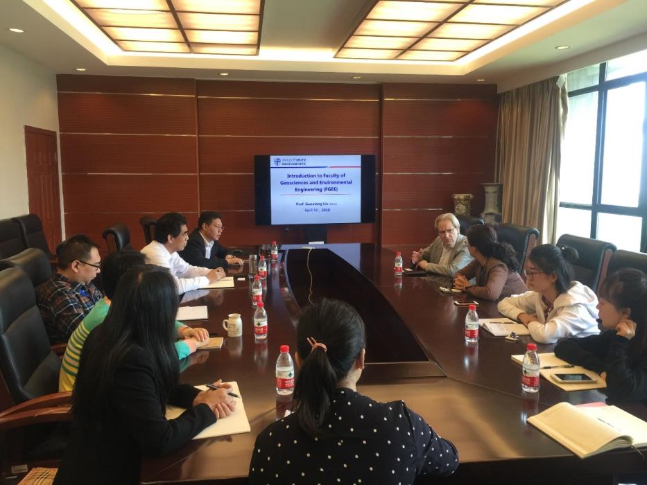 首先,王齐荣书记代表公司对Wolfgang Kainz教授的造访表示热烈欢迎,希望教授此次成都之行一切顺利。随后,刘国祥经理就公司发展历程和公司目前的发展状况做了专题汇报。刘经理主要介绍了公司历史悠久的办学历程、现状以及公司的教学科研团队、科研基础设施、国际化示范公司申报情况等。他特别提到成都特殊的地缘条件(靠近青藏高原),促使公司的测绘学科、地质学科和环境学科研究内容具有独特优势,科研条件得天独厚。