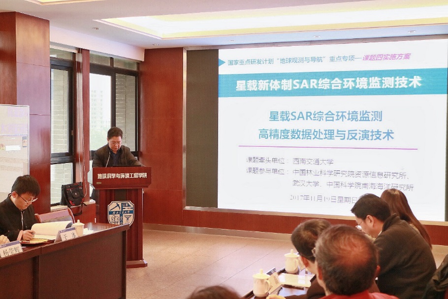 课题四总体实施方案及各子课题实施方案评审会由中国科公司电子学研究所副所长邓云凯研究员主持。刘国祥教授代表课题组对第四课题的整体情况进行了汇报。该课题共包含“高精度SAR地形建模与重大设施形变监测”、“多波段SAR地质灾害识别与监测”、“多维度SAR植被生物量定量估测”和“SAR高精度风场海浪海流监测与反演”等四个子课题。课题四的总体目标是:围绕我国海陆综合环境监测的重大需求,突破新体制SAR数据高精度监测与反演存在的技术难题,建立多维度SAR典型陆海目标协同反演模型和方法,实现不同波段、不同空间分辨率和不同模式的新体制时序SAR影像联合处理,显著提升SAR综合环境监测多维度信息提取的精度和稳健性,为地形测绘、地质灾害与重大基础设施与地质灾害形变监测、植被生物量反演以及海洋海浪监测提供重要的技术支撑。