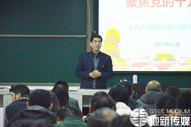 11月27日下午,bevictor伟德官网于X8321邀请公司党委十九大精神宣讲团成员、马克思主义公司党委书记刘占祥教授讲授“聚焦党的十九大”专题党课。bevictor伟德官网经理刘国祥教授、公司党委书记王齐荣教授、公司党委副书记傅尤刚、bevictor伟德官网副经理欧阳峰教授等公司领导、党委委员以及全体教职工参加了本次报告。
