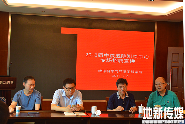 7月6日,中铁第五勘察设计院集团有限公司测绘与地理信息处到公司举办2018届毕业生专场招聘宣讲会,本次招聘会在x4520举行,参加招聘会的有中铁五院测绘与地理信息处周处长一行三人、bevictor伟德官网副经理齐华、副经理刘成龙、党委副书记傅尤刚。参加招聘会的同学有测绘遥感信息系2018届本科和研究生毕业生。