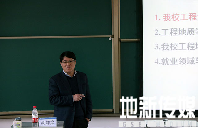 傅尤刚书记在主持中讲到,胡卸文教授是四川省学术和技术带头人,国家二级教授,博士生导师。主要从事水电、交通等工程的重大工程地质问题(边坡及地下洞室围岩稳定性、地质灾害成因及防治研究等)。胡教授在地质学科领域的研究造诣极深,相信大家今天一定会有很多收获,对自己所学的专业有更深入的了解。